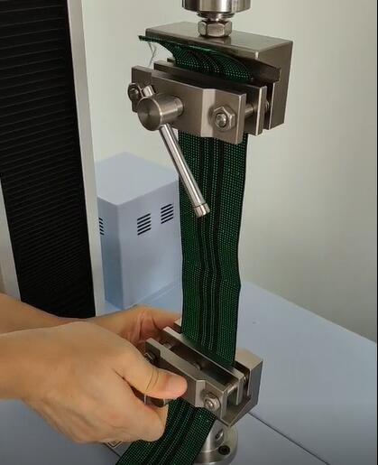 松緊帶的種類有很多,不同類型的安全帶測試要求是不一樣,休閑躺椅加固帶(松緊帶)是其中的一種。宏拓儀器生產(chǎn)研發(fā)各種拉力試驗機,客戶寄一些松緊帶需要測試其力值,使用測試松緊帶的型號是