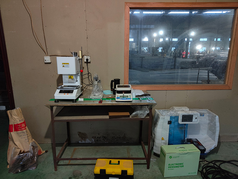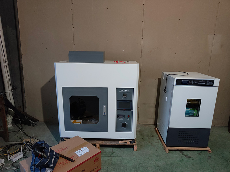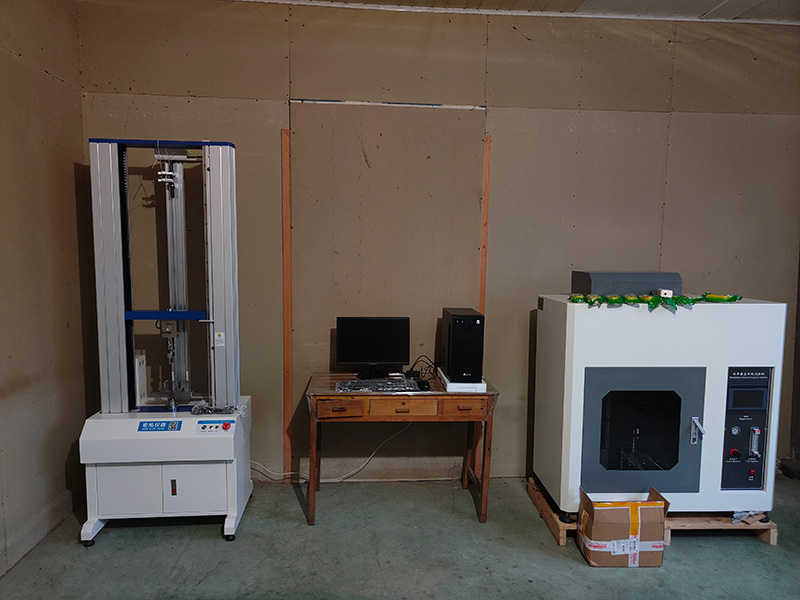 密度計(jì)、拉力試驗(yàn)機(jī)、沖擊試驗(yàn)機(jī)、水分測試儀、垂直水平燃燒試驗(yàn)機(jī)與灼熱絲試驗(yàn)機(jī)等。