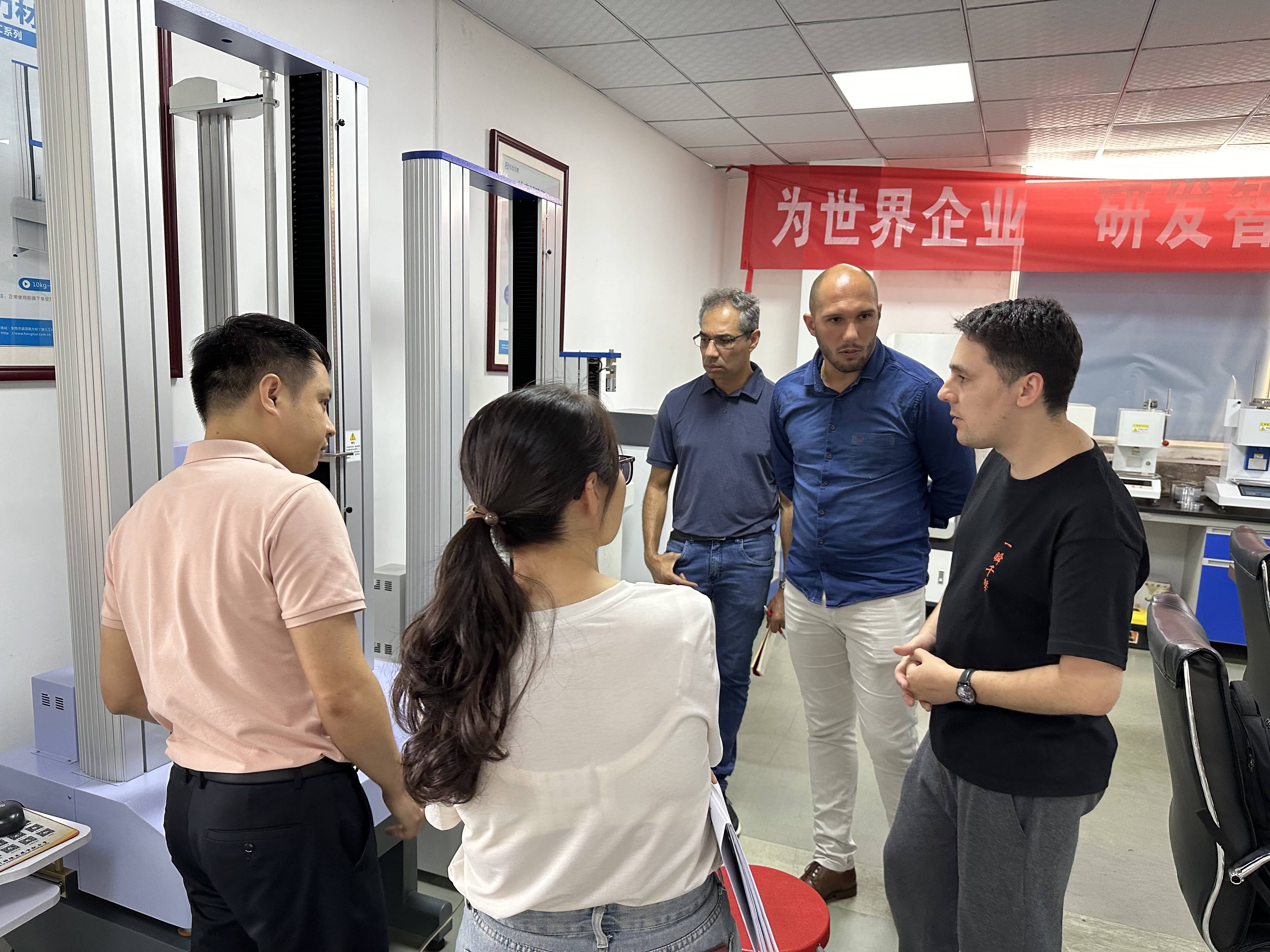 公司總經(jīng)理鐘先生代表公司對巴西客戶的到來表示熱烈歡迎,并安排了細(xì)致的接待工作。在部門主要負(fù)責(zé)人的陪同下,客戶參觀考察了公司檢測實驗室,了解了各類最新款的檢測儀器、以及實驗室檢測儀器可持續(xù)發(fā)展的無限美好前景。
