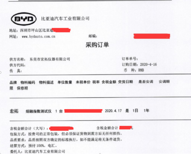 比亞迪在反復(fù)確認(rèn)測量數(shù)據(jù)的準(zhǔn)確性與穩(wěn)定性后,再返單一臺,用于汕尾公司的塑料PP融指測試: