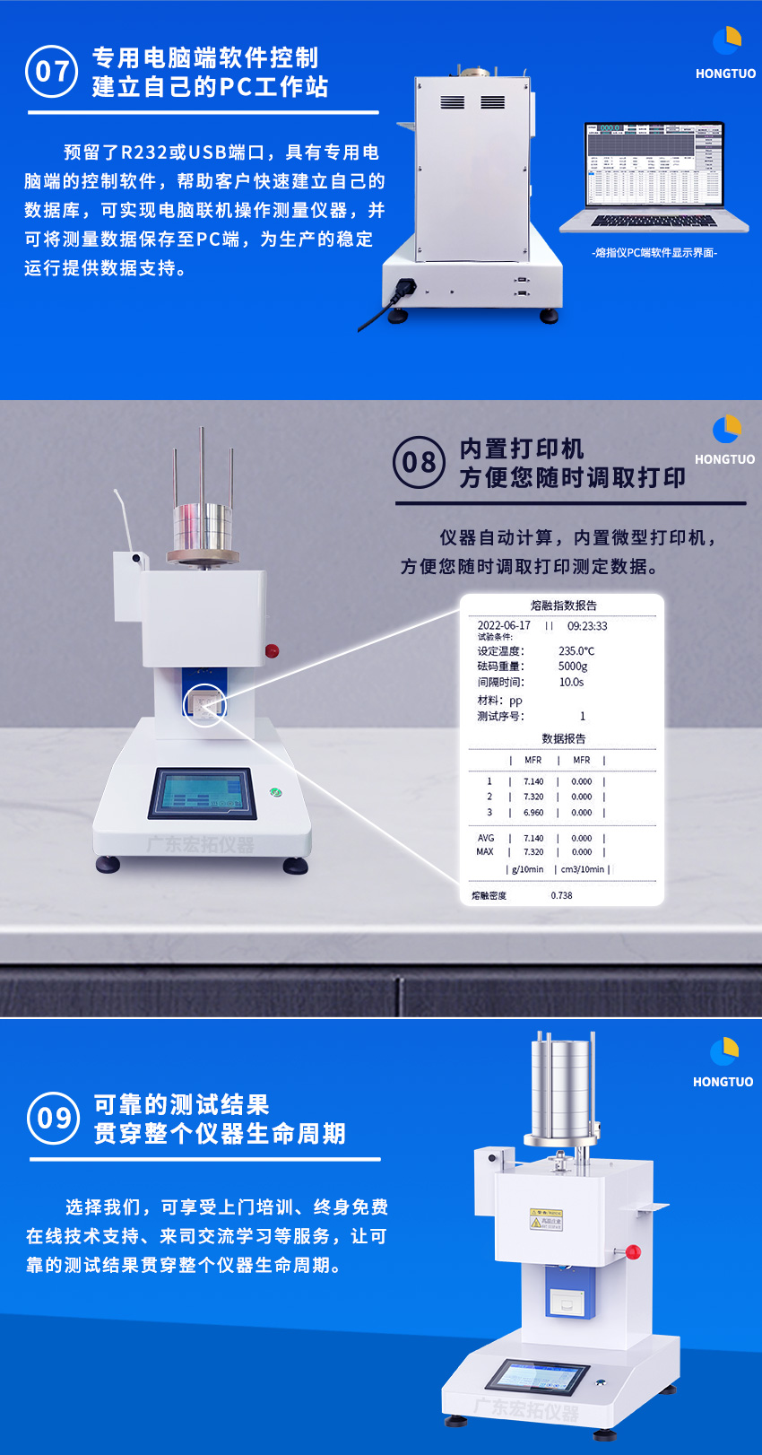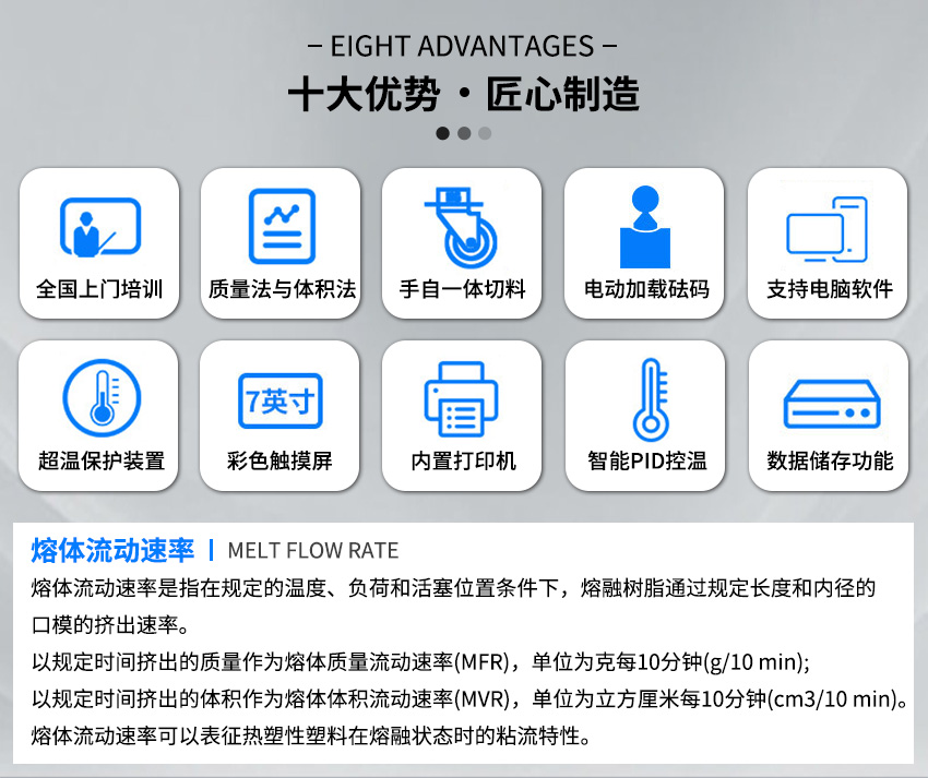 | 測定范圍 | MFR:0.1~100g/10 min MVR:0.1~3500cm3/10 min |